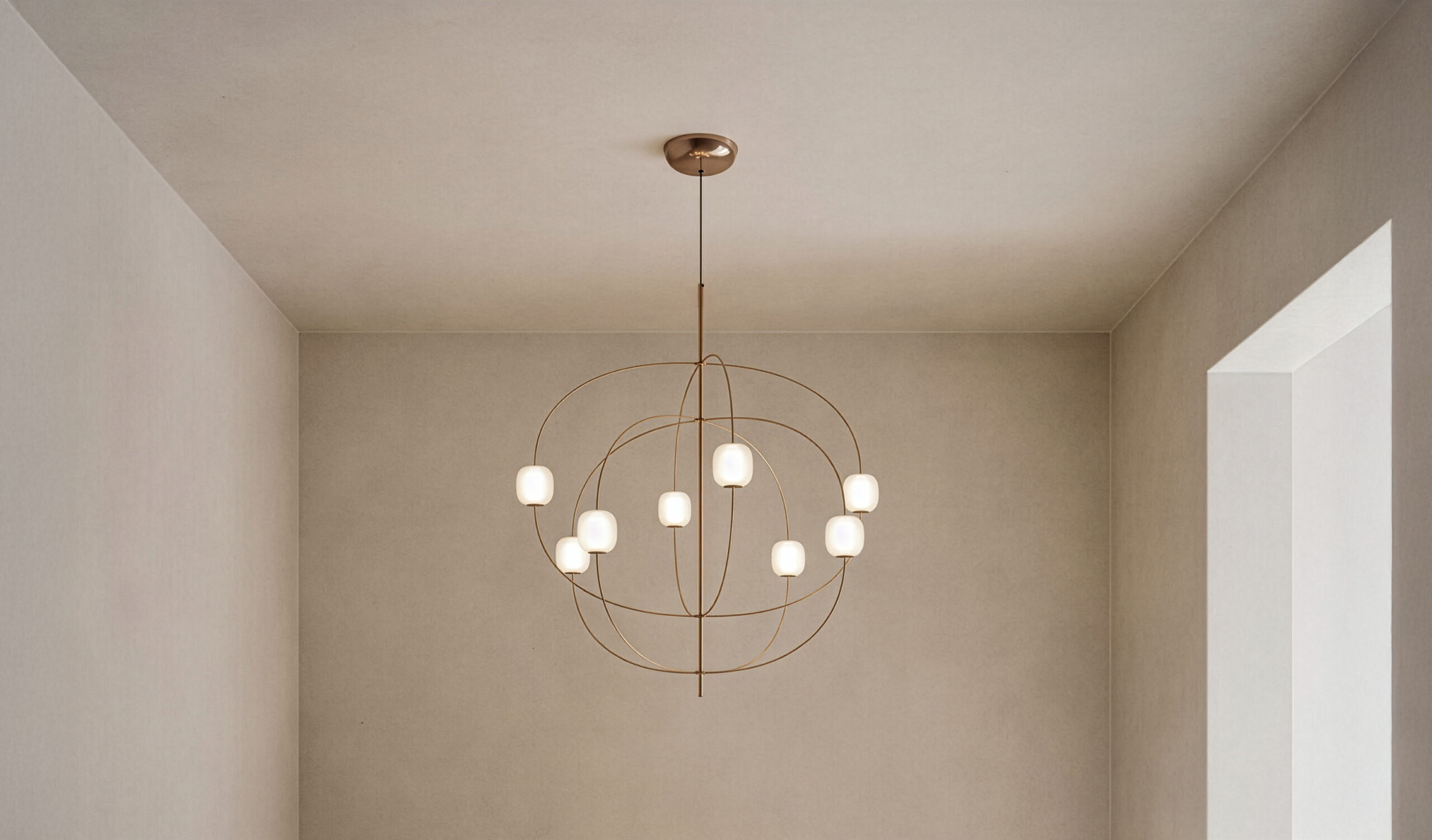 La nueva lámpara de suspensión Axia de Lodes transforma el arquetipo del candelabro tradicional. Esta