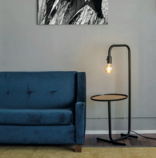 La versión de aplique resulta de lo más útil cuando se coloca al lado de la cama, porque además de proporcionar luz puntual, aloja un libro, un reloj, el móvil. Esos objetos cotidianos. La versión de piso, que alcanza los 106 cm de alto, precisa un poco más de espacio, por lo que viste de maravilla el rincón de lectura, queda bien al lado del sofá y en la entrada. Está elaborada en aluminio y disponible en color negro.