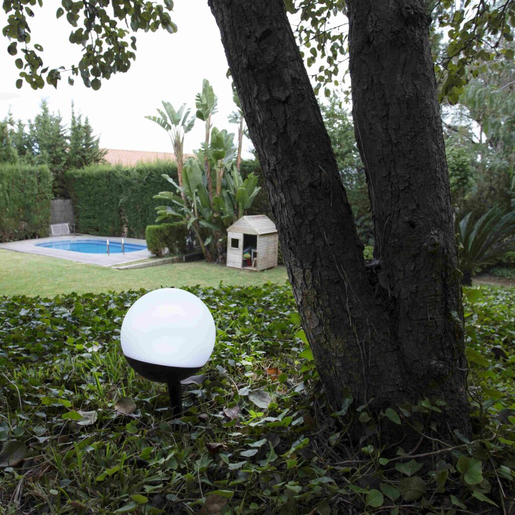 Por otra parte, el difusor de la luminaria de exterior tiene forma redonda, la síntesis de la perfección, y gracias a distintos accesorios puede convertirse en una lámpara colgante o de suspensión. De este modo es adecuada para usar en comedores de jardín y bares al fresco. Además, es posible hacer un twist para transformarla en una pieza de iluminación de sobremesa adecuada para las zonas lounge del jardín. Es tan práctica, que incluso puede iluminar las zonas de paso en las que no es posible colocar un aplique porque no hay paredes. Gracias a un accesorio adicional puede usarse también como estaca.
