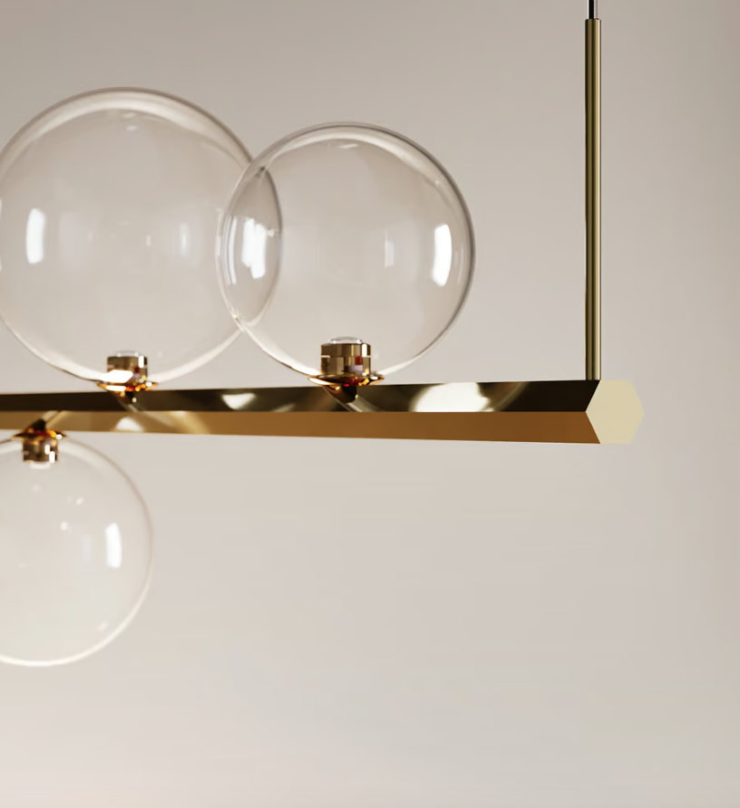 Con esta nueva dimensión, la lámpara firmada por Chia-Ying Lee adquiere un carácter renovado, esencial y decorativo. Perfectas en su forma y poéticas en su esencia, las esferas de vidrio soplado tienen cabida en una barra con un fuerte valor estético. Como si fueran frágiles pompas de jabón, las pantallas de Random Stick se disponen a lo largo de un eje. Tal estructura metálica tiene forma hexagonal y Lodes la ofrece en dos tamaños: larga y corta.