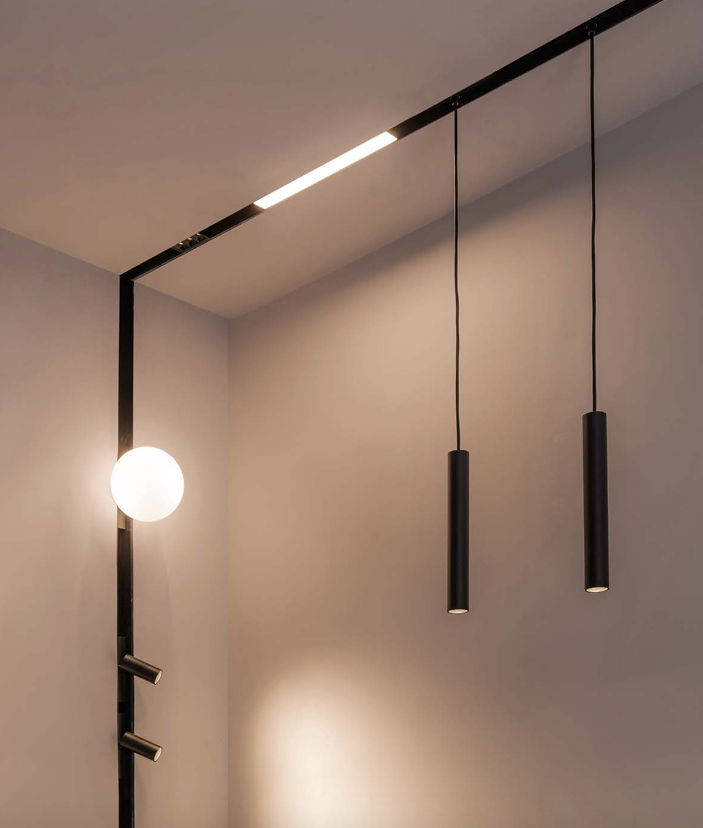 La versatilidad de Neso y Neso Slim de Faro Barcelona es tal, que se adaptan al espacio sin límites. Este sistema de carril permite dar rienda suelta a la creatividad en cualquier proyecto. Por su tecnología innovadora es posible combinar diferentes tipos de luminarias, tanto para obtener luz general como de acento.