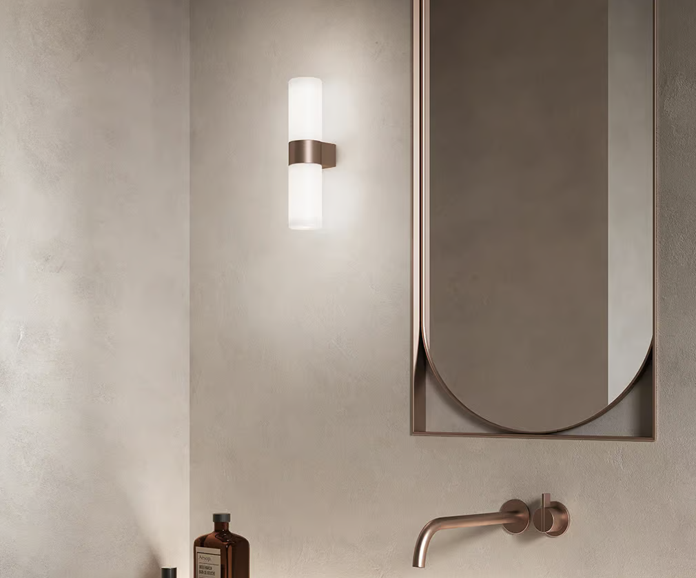 Diseñado por la arquitecta Patricia Urquiola, el aplique Pastilla de Kdln se caracteriza por un resistente cuerpo cilíndrico de metal pintado de blanco. El difusor está elaborado en cristal prensado y tratado al ácido. El anillo central puede elegirse blanco o bronce. Este aplique utiliza dos bombillas halógenas/fluorescentes/led para producir una luz directa en cualquier espacio interior. Pastilla es perfecta para iluminar espacios residenciales y contract en las áreas de baño. Con 35 cm de alo y 8 cm de diámetro, queda perfecta a los lados del espejo del baño.