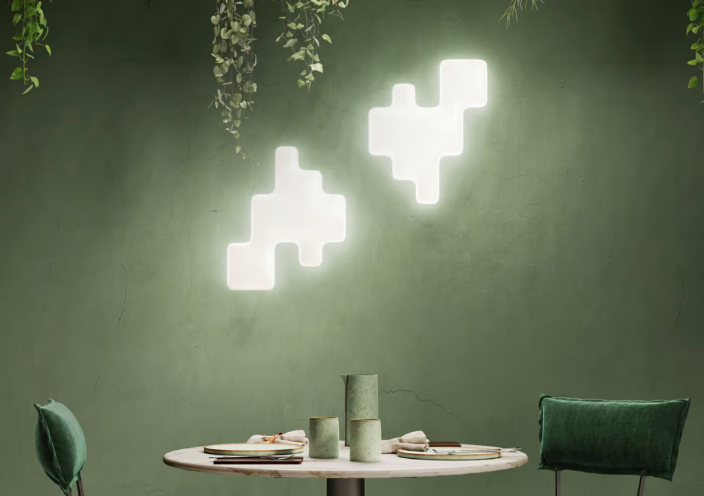 Consta de un elemento y una matriz que pueden imitarse a voluntad para crear formas luminosas y cambiantes de cualquier tamaño. Así, la lámpara Pixel de Kdln está inspirada en el lenguaje digital de la década de los 70, cuando el pixel se convirtió por primera vez en el elemento más pequeño de una imagen. Instalada, se convierte en un elemento para jugar con la luz en espacios modernos. Diseñado por Grupo Panadería, el aplique Pixel tiene difusor de polietileno moldeado rotacionalmente y montado sobre un soporte metálico oculto.