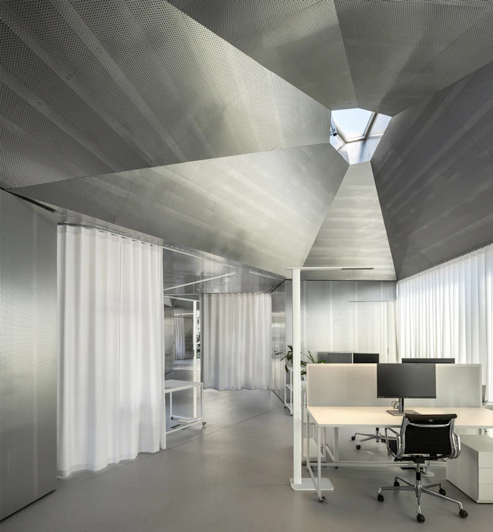 Además, cada modelo Workmates de Flos ofrece formas de distribución de la luz específicas para cada espacio de trabajo. Por un lado, hay modelos de distribución de flujo amplio, ovalado o asimétrico para la emisión descendente y flujo extraamplio para la emisión ascendente. Así, cumple con los estándares más estrictos en términos de confort visual para oficinas, lo que garantiza un entorno de trabajo cómodo para la vista. Al reducir el deslumbramiento y la fatiga visual, fomenta un ambiente laboral más productivo y saludable.