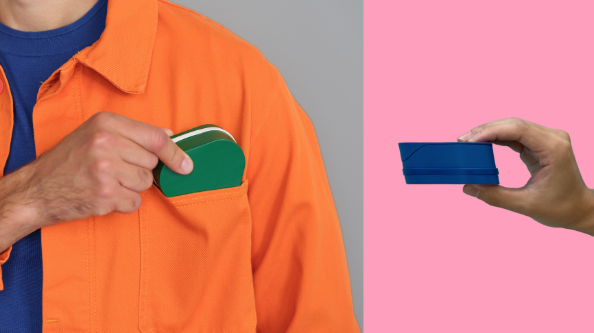Un artículo esencial que se da por sentado se convierte en una pequeña pieza de diseño inteligente y práctica. En forma triangular, la pieza está disponible en seis acabados para el cuerpo y la tapa. A elegir entre rojo, verde, negro, azul, gris, blanco. En cambio, para el mango hay nueve tonos que permiten infinidad de posibilidades de combinación. Tal variedad permite al usuario expresar su personalidad, así como sucede con la ropa.