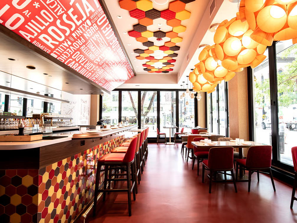 Inspirada en la frágil presencia del diente de león, la lámpara Dandelion de LZF replica su encanto y lo multiplica. Jaleo, el restaurante del chef José Andrés en Chicago se ilumina con un conjunto de lámparas de suspensión Dandeleon. Alineadas entre la barra y las mesas, las lámparas penden del techo aportando una cálida luminosidad.