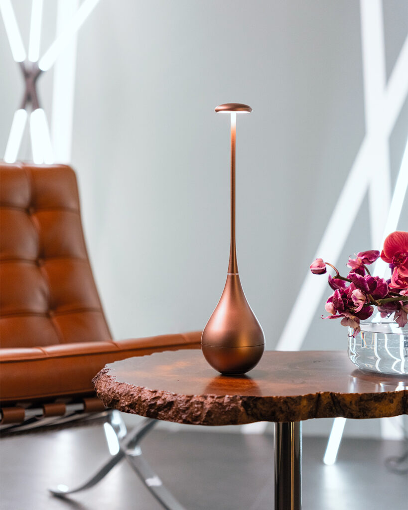 Diseñada por Federico de Majo, Soffio Vase es ideal para entornos domésticos y espacios contract. En mesas de restaurantes es una solución lumínica práctica que añade, además, un toque refinado. Con 26 cm de alto, incluye control táctil para encendido, apagado y ajuste de la temperatura de color y de la intensidad lumínica en cuatro niveles.