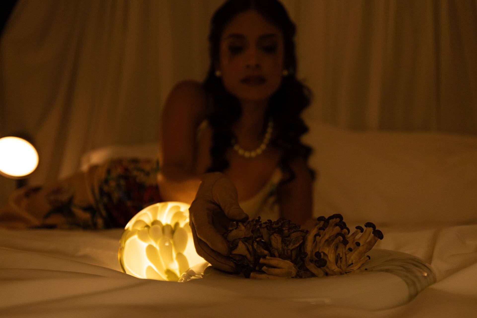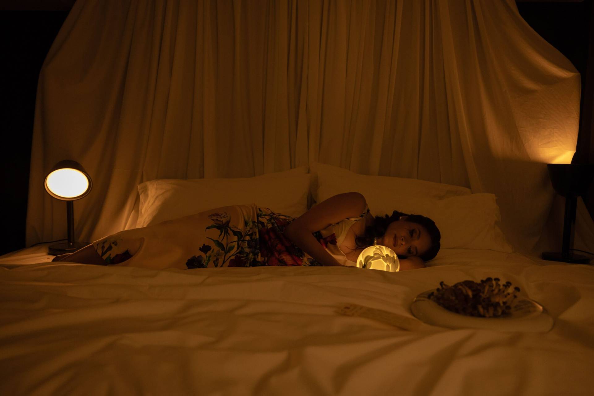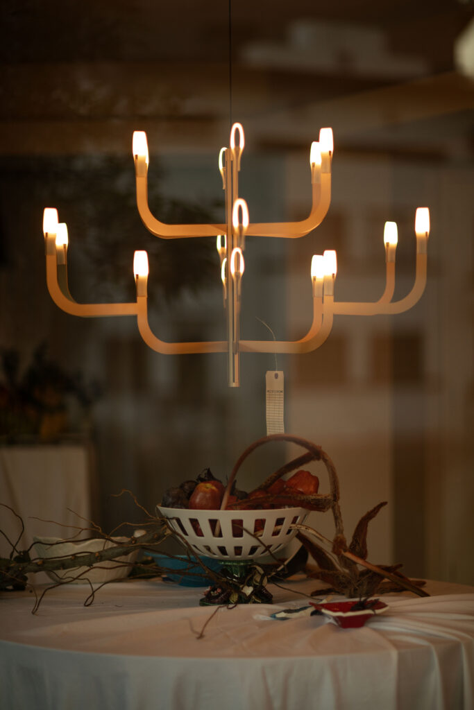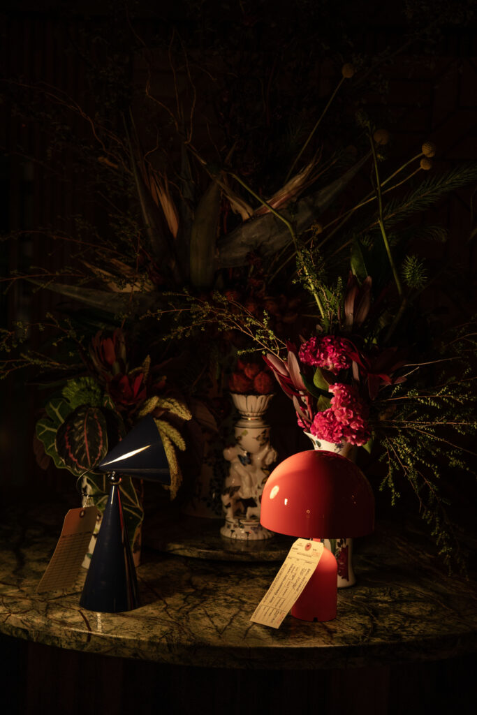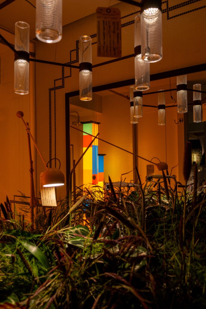 La luz envolvente emitida por Bolina Table de Tooy y The Laddi de Roll & Hill despejan la sombras del vestíbulo. Por otro lado, Iris floor de A-N-D permanece expectante. En el restaurante, el menú promete delicias inciertas: consomé de cenizas con perlas de hielo, pastel de sombras y merengue de humo degustados a la luz de Candela Tavola, de Menat Studio, Chant Portable de Lee Broom o Iris Table de DCW éditions.