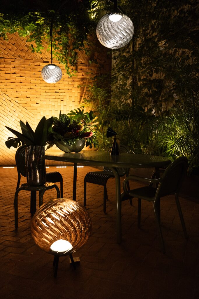 Sorrento de Nemo, Lampe B de DCWéditions, Oasi de Hind Rabii, Knit de Vibia y Kando de Bover iluminan el camino hacia la libertad. No obstante, quedarte en la habitación o salir a la terraza del Hotel Maison Diez Company 2025 siempre será una opción personal. Hotel Maison Diez Company 2025 es una iniciativa de Gina Diez Barroso y Rodrigo Fernández, cofundadores de Diez Company, la empresa líder en iluminación en México. Se expone en Campos Polanco, Campos Elíseos 361.