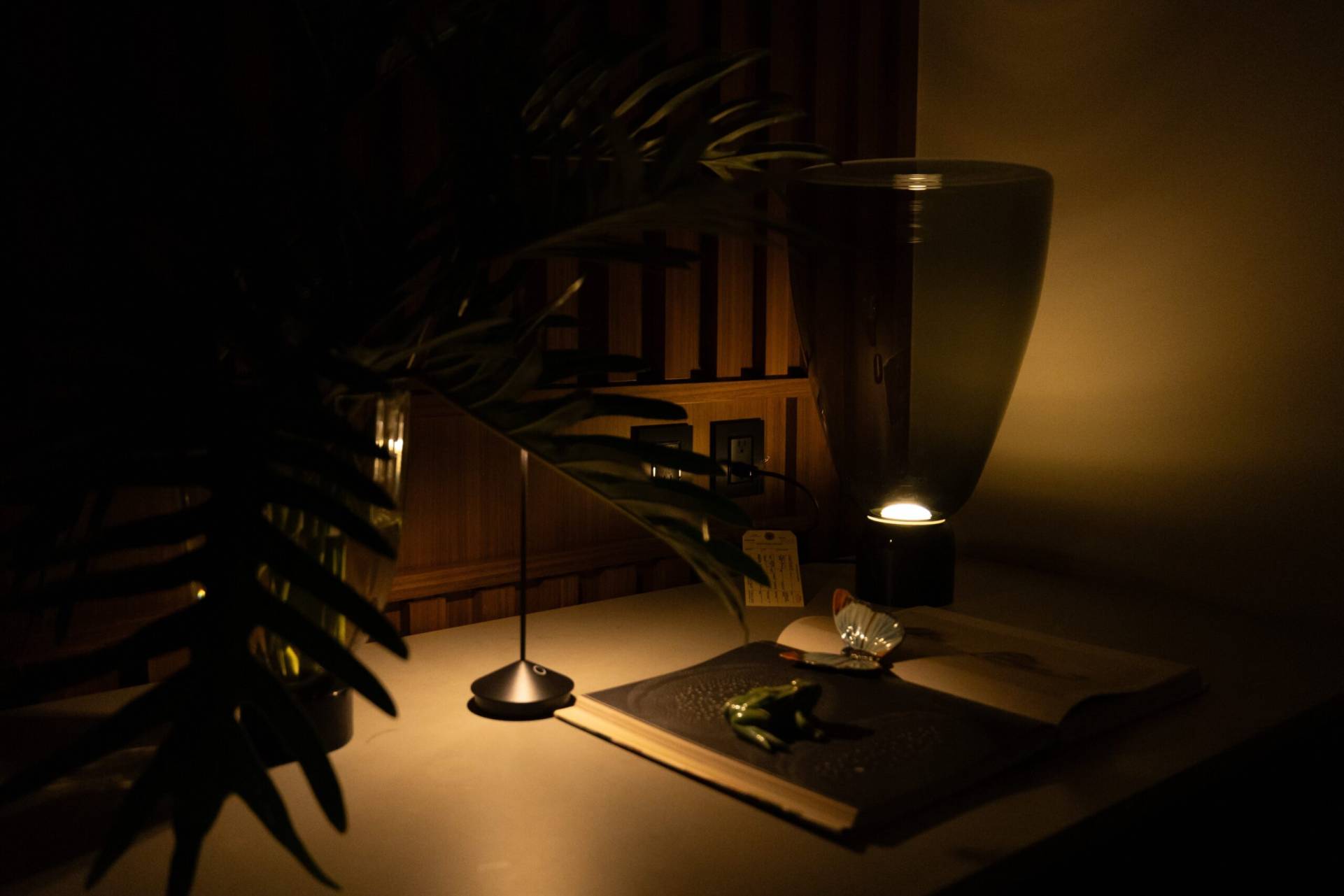 En Hotel Maison Diez Company, los butlers abren la puerta y el vestíbulo se llena de un resplandor dorado. La luz envolvente emitida por Bolina Table de Tooy y The Laddi de Roll & Hill despeja las sombras del espacio. En un rincón, Iris Floor de A-N-D permanece expectante, como si esperara que alguien recordara.