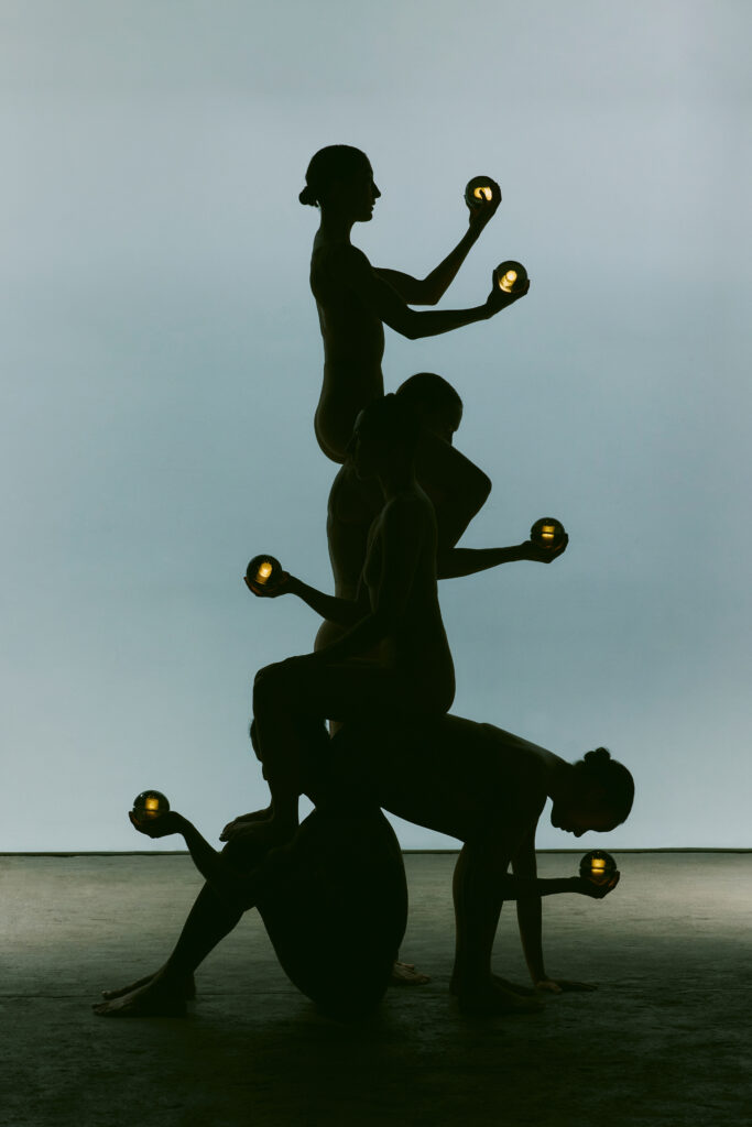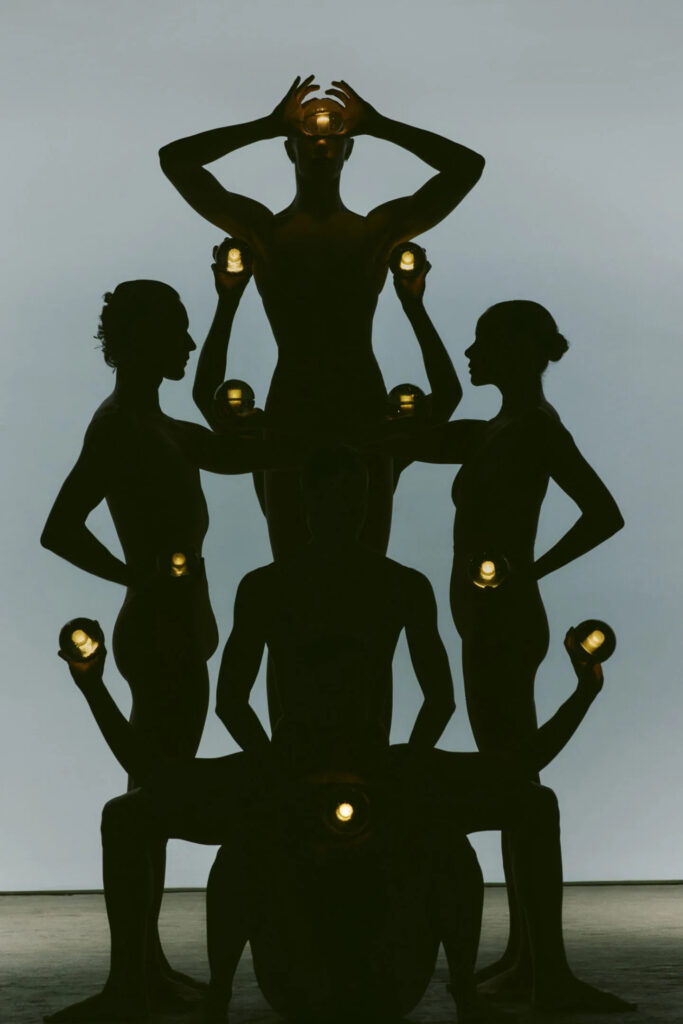 En Light Imprint, el cuerpo humano se convierte en un punto de conexión. La forma nace del movimiento, la geometría sigue al gesto y el espacio responde al tacto. A medida que los bailarines interactúan con las luminarias, equilibrándolas o poniéndolas en movimiento, dan lugar a estructuras efímeras. Estas figuras transforman la manera en que experimentamos y comprendemos la luz.
