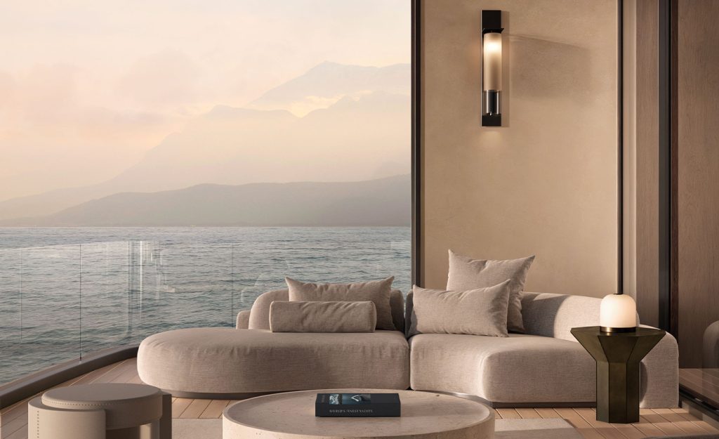 Otra parte de la colección de Artìcolo Studios se caracteriza porque incluye accesorios personalizados. Lámparas de muro y colgantes como Slab, Slim, Eclipse, Lumi, Indi y Float incorporan brazos personalizados, soportes de anclaje y discretos clips. Estos mantienen las luminarias en su lugar, garantizando su estabilidad incluso con el movimiento del mar. Cuidadosamente diseñados, estos accesorios resultan visualmente discretos preservando estética y ofreciendo seguridad estructural.