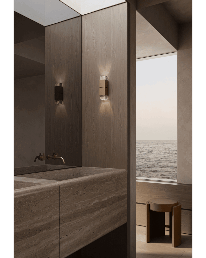 Debido a su robusta ingeniería, las luminarias Vessel Edit no requieren elementos adicionales para su instalación. Las formas esculturales de Artìcolo Studios se unen a anclajes ocultos y fijaciones personalizadas. De este modo se asegura que cada pieza permanezca segura, independientemente del movimiento de la embarcación.