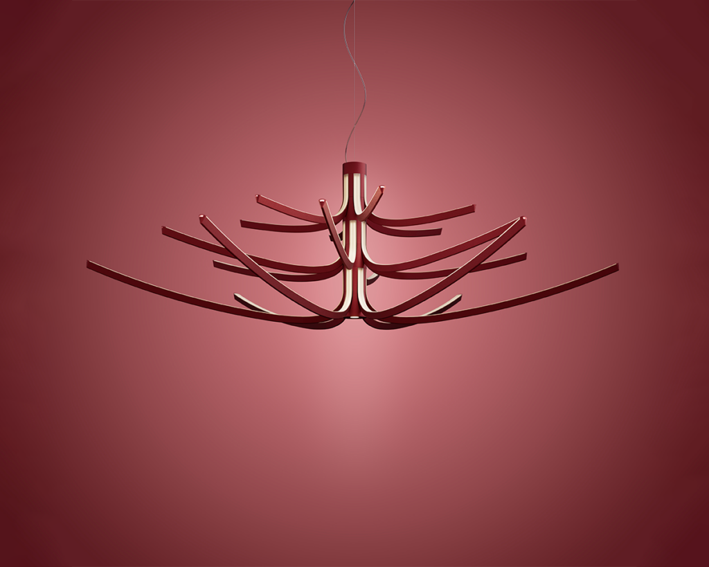 Diseñada por Alberto y Francesco Meda, Asteria de Foscarini destaca por su silueta depurada y contemporánea. Su construcción integra un disco luminoso delgado que equilibra precisión técnica con una presencia visual ligera y sofisticada. Síntesis de funcionalidad y decoración, se caracteriza por sus brazos curvos dispuestos dinámicamente. Así, revitaliza la clásica lámpara de araña.