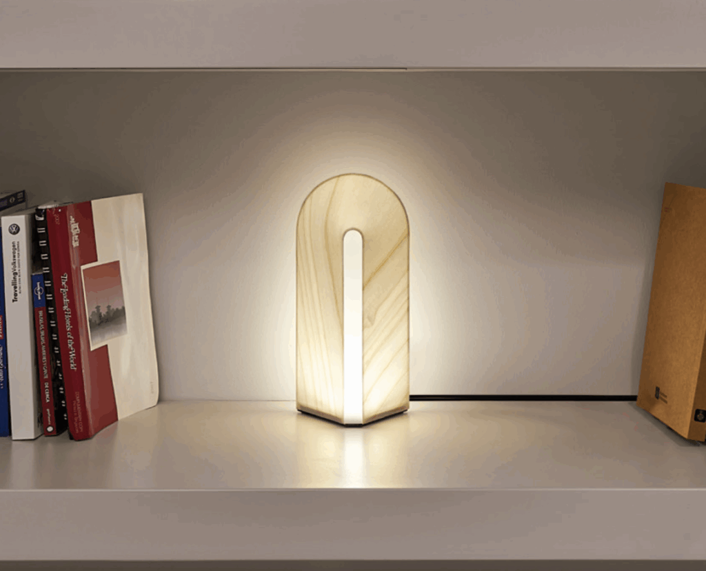 El diseño de Igloo explica su nombre: sin duda evoca la arquitectura del iglú. Además, de su diseño característico, LZF la dotó de una luminosidad suave y acogedora, que se filtra a través de la madera. Diseñada como un tótem que aporta distinción cuando está apagada, encendida cobra movimiento y derrama una luz difusa.