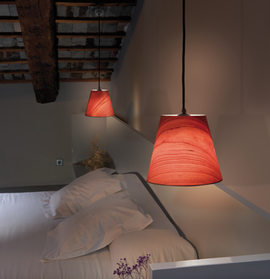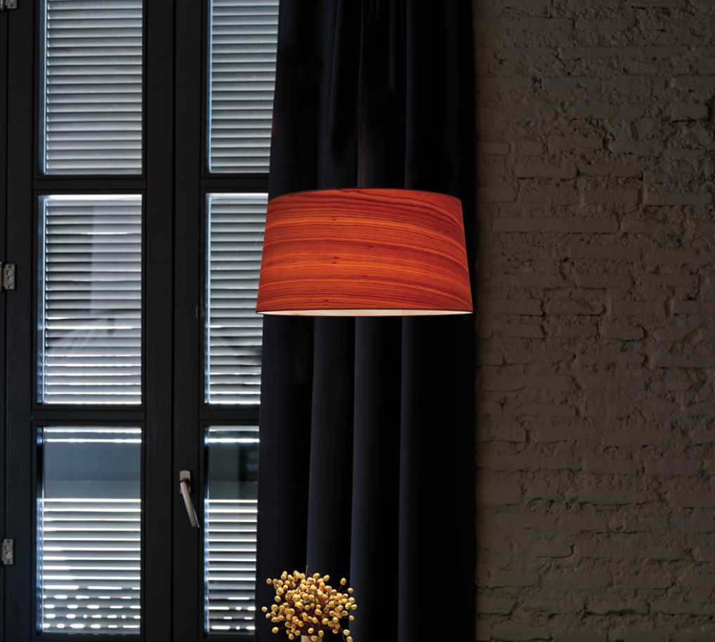 Por su silueta básica elaborada en chapa de madera natural aporta una elegancia serena a los interiores contemporáneos. A la vez, ofrece una presencia familiar y refinada. Zeta de LZF está disponible en diferentes tamaños y acabados. Los colgantes pueden elegirse de 18 cm, 27 cm y 34 cm de diámetro, en el modelo C. Por otro lado, el modelo G está disponible en 33 cm y 47 cm de diámetro. Estas piezas se ofrecen en cerezo, blanco y negro.