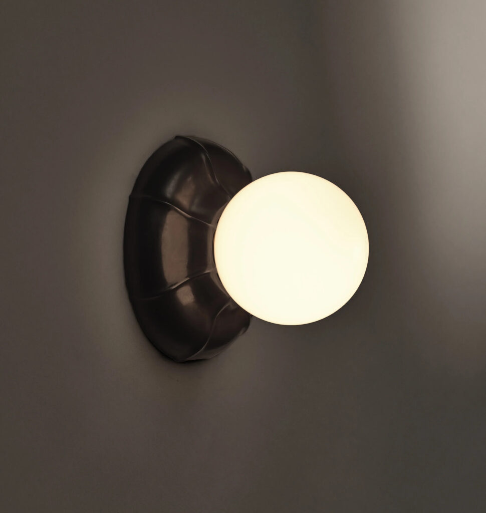 Creado para derramar su luminosidad sobre los muros, el aplique Epoch de Roll & Hill, también es fruto del talento del despacho Evam. Comenzó como un experimento de textura y tacto que dio como resultado una forma sutil y elegante. Poco apto para la producción industrial, la mano del artesano lo hizo posible. Así, Epoch es una pieza de belleza serena, cuyo material expresa su intención. Está disponible en plata suave, latón sin lacar y bronce bruñido.