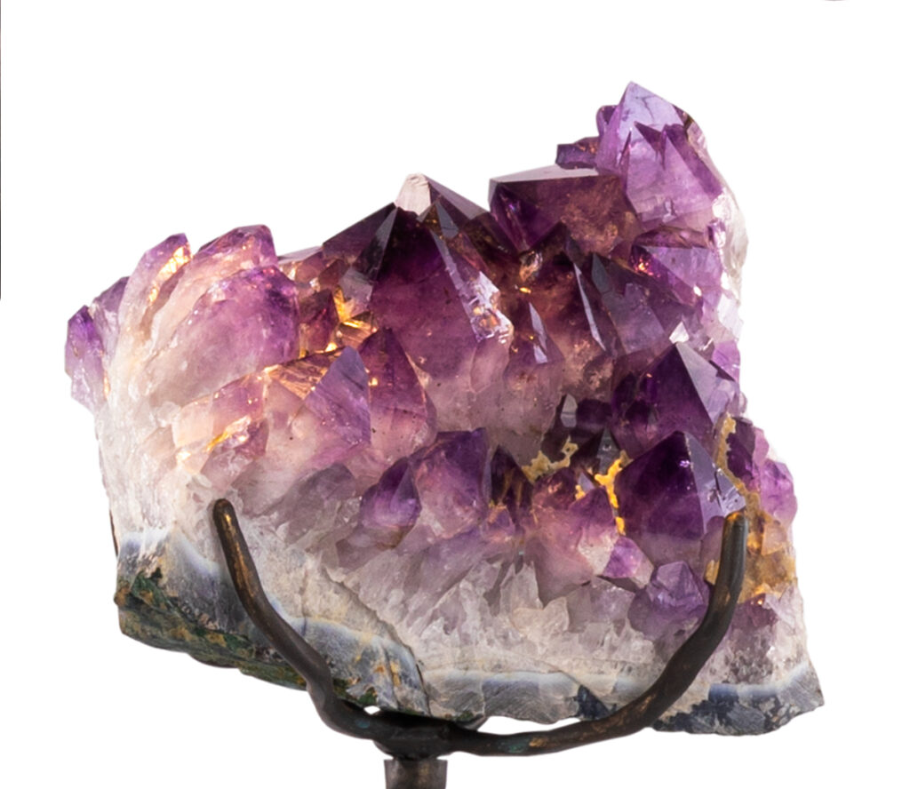 Orpheus de Brand van Egmond aporta una elegancia sutil que complementa el entorno sin sobrecargarlo. Además, puede personalizarse con las distintas piedras disponibles. Además de la amatista, la marca dispone de piedras como cristal de roca, malaquita y pirita bajo pedido. Las piedras semipreciosas varían en tamaño, forma, color y apariencia y se entregan en su estado puro y sin pulir.