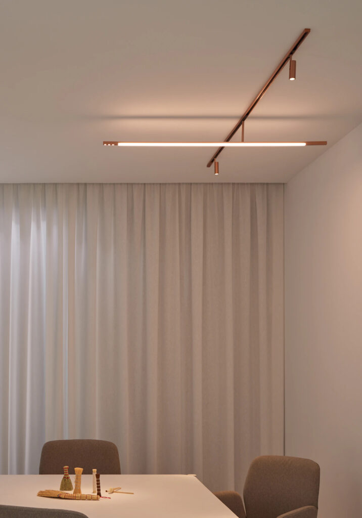 Por otro lado, la tecnología de miniaturización incorporada al sistema Zero Track Pro permite gestionar las luces de manera individual. Es posible mediante protocolo Dali o control inalámbrico Casambi. También incluye una sección de conductores eléctricos y transmisión de datos BUS. Además, está disponible en cuatro acabados: negro, bronce, cobre y acero; los tres metálicos son cepillados.