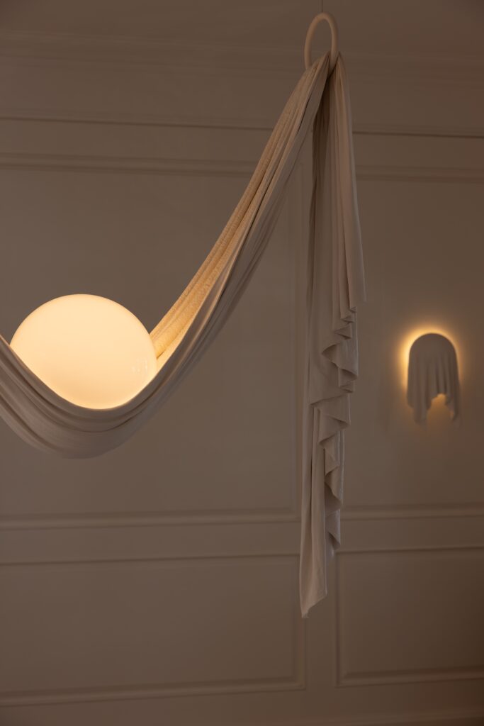 A lo largo de varias estancias, The Resident se despliega revelando 50 de las luminarias más icónicas de la marca. Broom exhibe una selección de Requiem, incluida la versión de muro recientemente incorporada a la colección. Esculpidas a mano en yeso drapeado por el propio Lee, las piezas Requiem se distinguen por su presencia serena que ofrece momentos de contemplación.