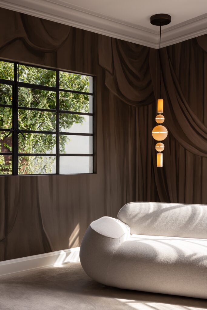 Paralelamente, The Resident incluye obras colaborativas recientes, como los colgantes y luminarias de mesa Cascade, diseñadas por Broom para Lladró. Además, se expone la colección Overture, con Calico Wallpaper, inspirada en cortinas con efecto trompe l’oeil.