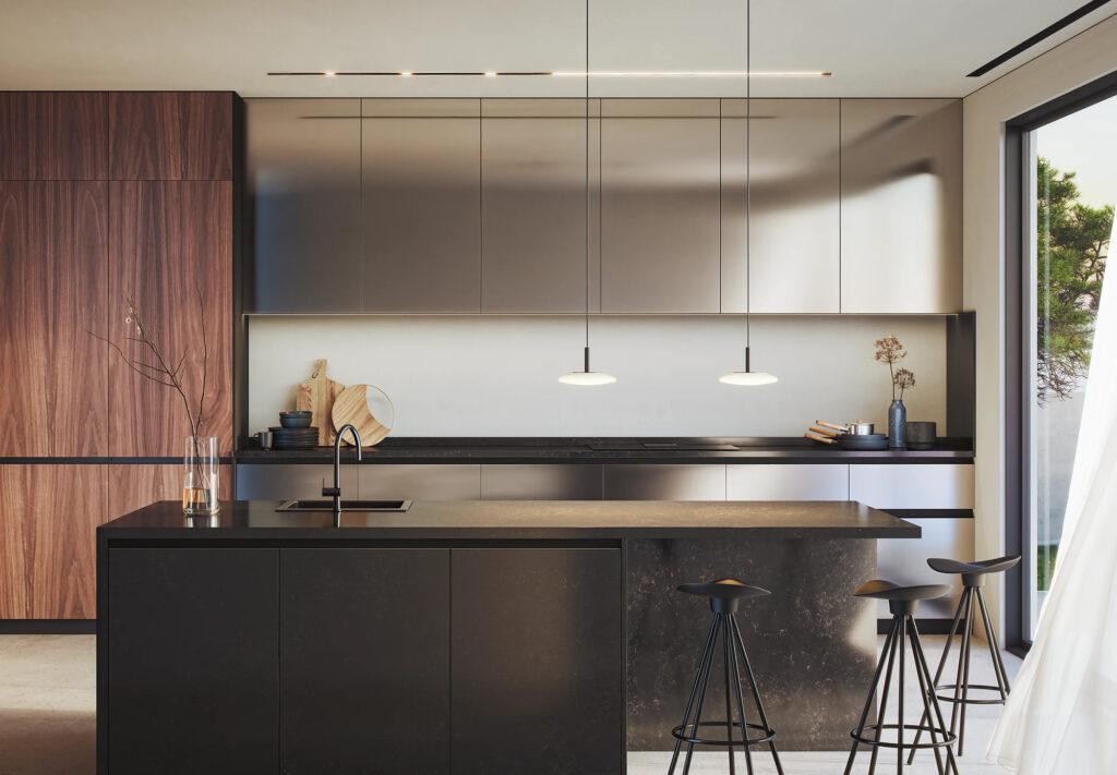 La serie Thales está formada por una lámpara de suspensión y un aplique que ofrecen múltiples posibilidades de instalación. Ambas versiones mantienen el espíritu minimalista de Estiluz, adaptándose con facilidad a diferentes alturas y necesidades lumínicas del usuario. El modelo de suspensión permite jugar con la verticalidad y altura, ya que puede alcanzar hasta 3.5 m. Por otro lado, con 22 cm de diámetro, el aplique soluciona la iluminación puntual. Estas opciones facilitan la creación de conjuntos dinámicos que mantienen un lenguaje visual unificado en todo el proyecto arquitectónico.