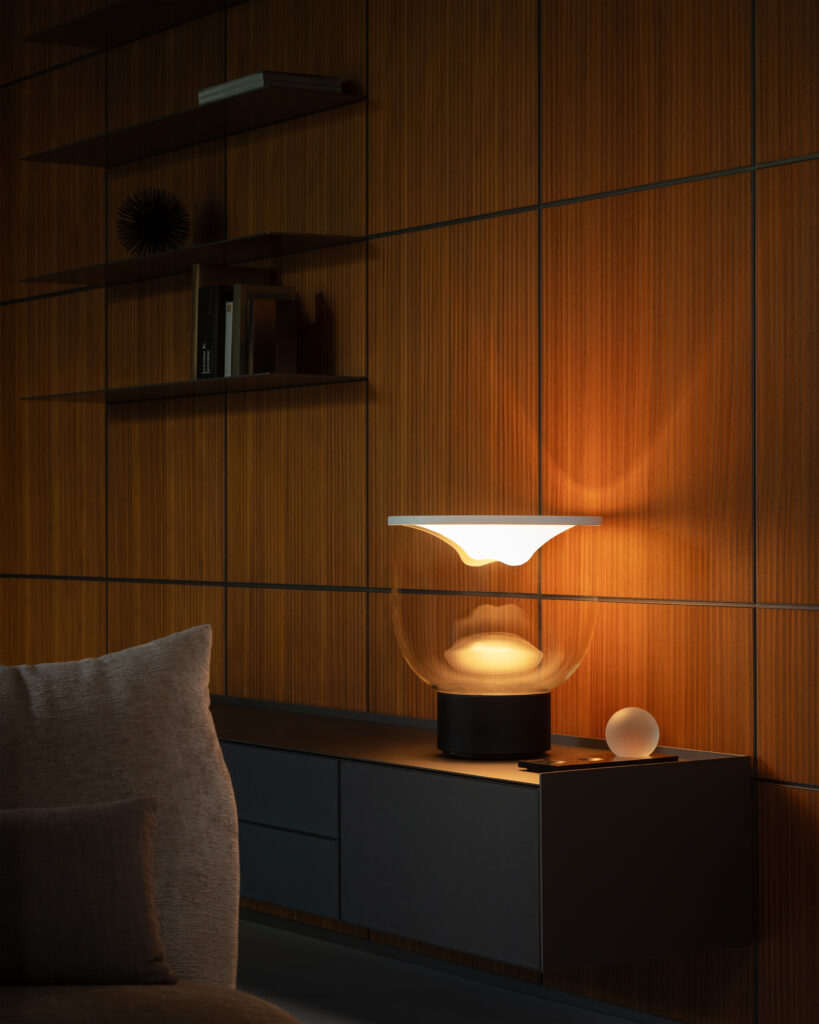 El diseñador Min Dong concibió Grammoluce bajo una premisa de ligereza y pureza formal. Esta colaboración con la marca buscó explorar nuevos escenarios de iluminación a través de gestos interactivos muy precisos. La visión de Min Dong se materializa en una pieza que invita al usuario al tacto. Gracias a Martinelli Luce, esta propuesta trasciende la iluminación convencional para convertirse en una escultura funcional de vanguardia. Foto: Min Dong y Habits Design.