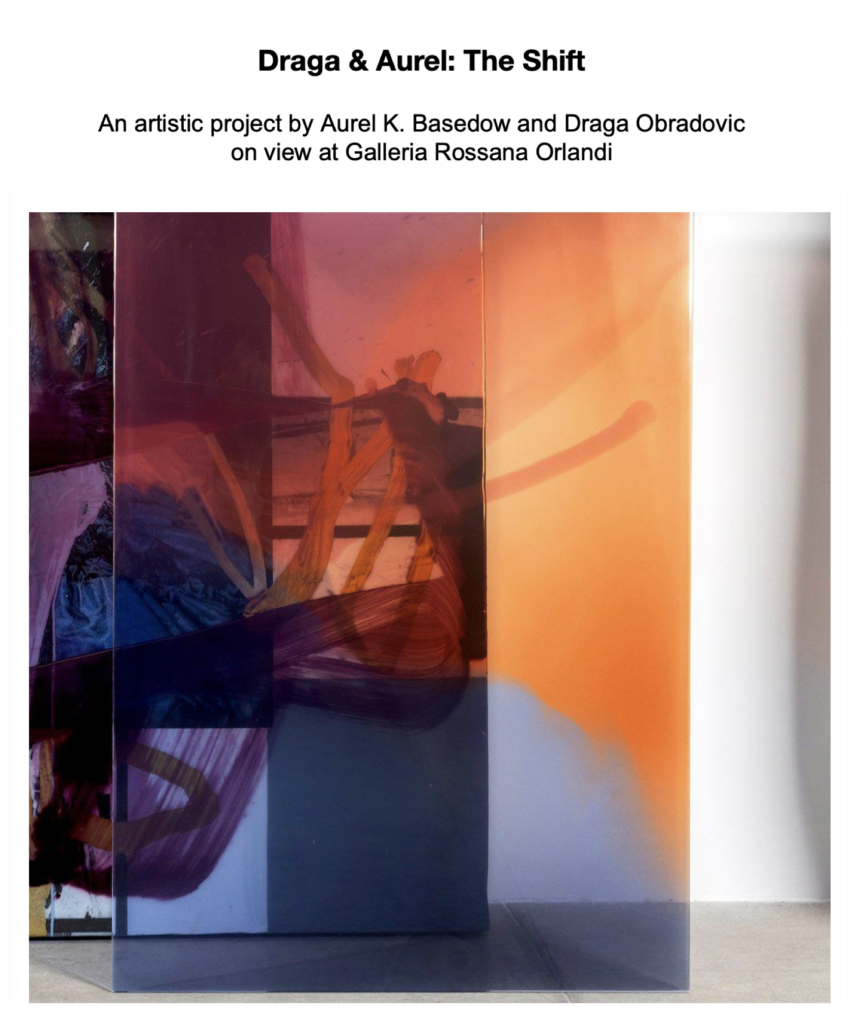 En la Galería Rossana Orlandi, la instalación explora la superposición de capas como recurso visual y conceptual en el arte y el diseño. El proyecto se enfoca en el díptico de Aurel K. Basedow, una obra abstracta que adquiere nuevos matices con la superposición de paneles de lucita pintados por Draga Obradovic.