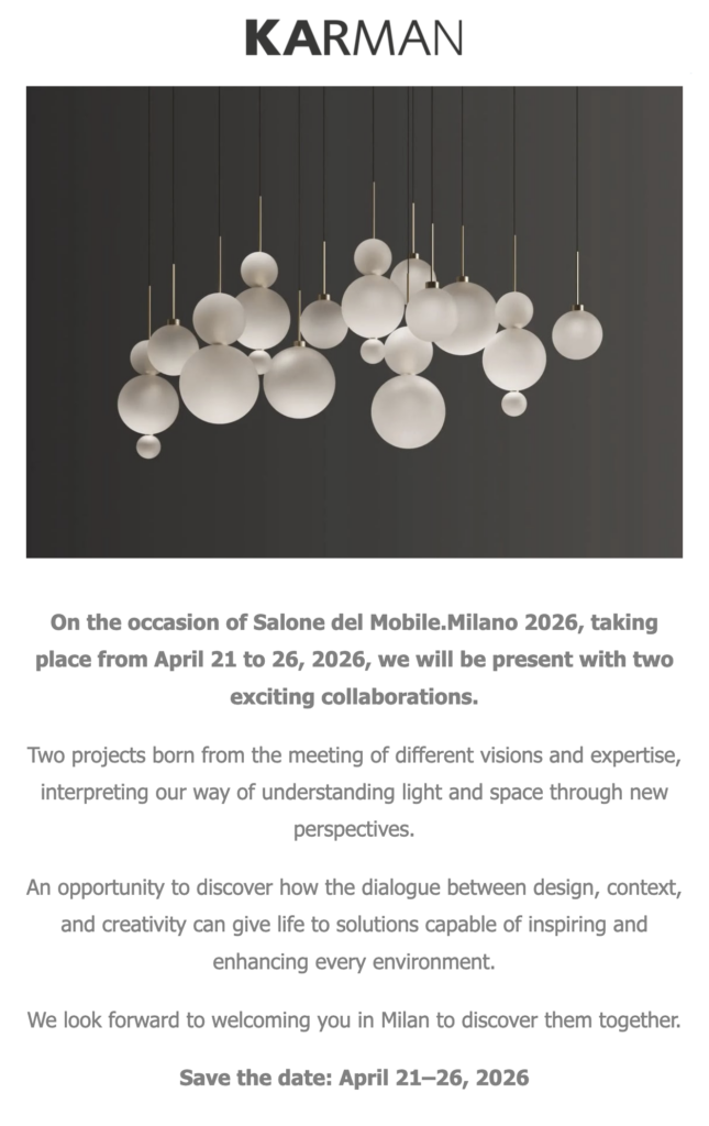 Forma parte de Appartamento Spagnolo, una exposición que presenta a las principales marcas de diseño español en el emblemático Palazzo Castiglioni. Un espacio inmersivo y cuidadosamente diseñado donde convergen arquitectura, interiorismo y estilo de vida. Del 20 al 26 de abril.