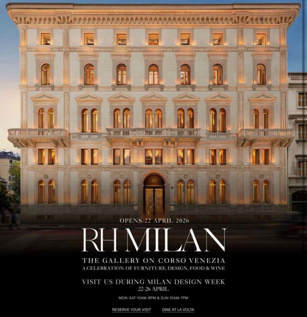 Una celebración de mobiliario, diseño, comida y vino ofrece RH Milán, que abre sus puertas al público durante la Semana de Diseño de Milán.