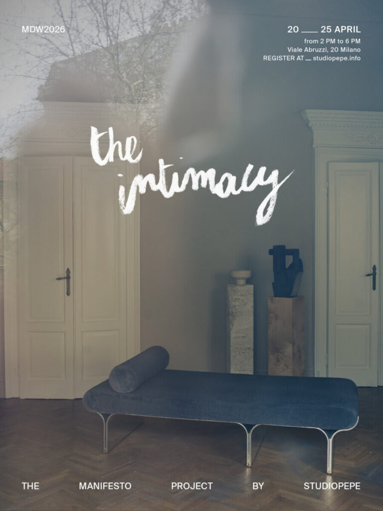 Presenta su proyecto The Intimacy, manifiesto que explora la intimidad como herramienta de conocimiento y fuerza creativa. La intimidad da continuidad a la serie Manifiesto, proyecto que condensa 20 años de trabajo de Studiopepe. Se presenta en la antigua sede del estudio dirigido por Arianna Lelli Mami y Chiara Di Pinto.