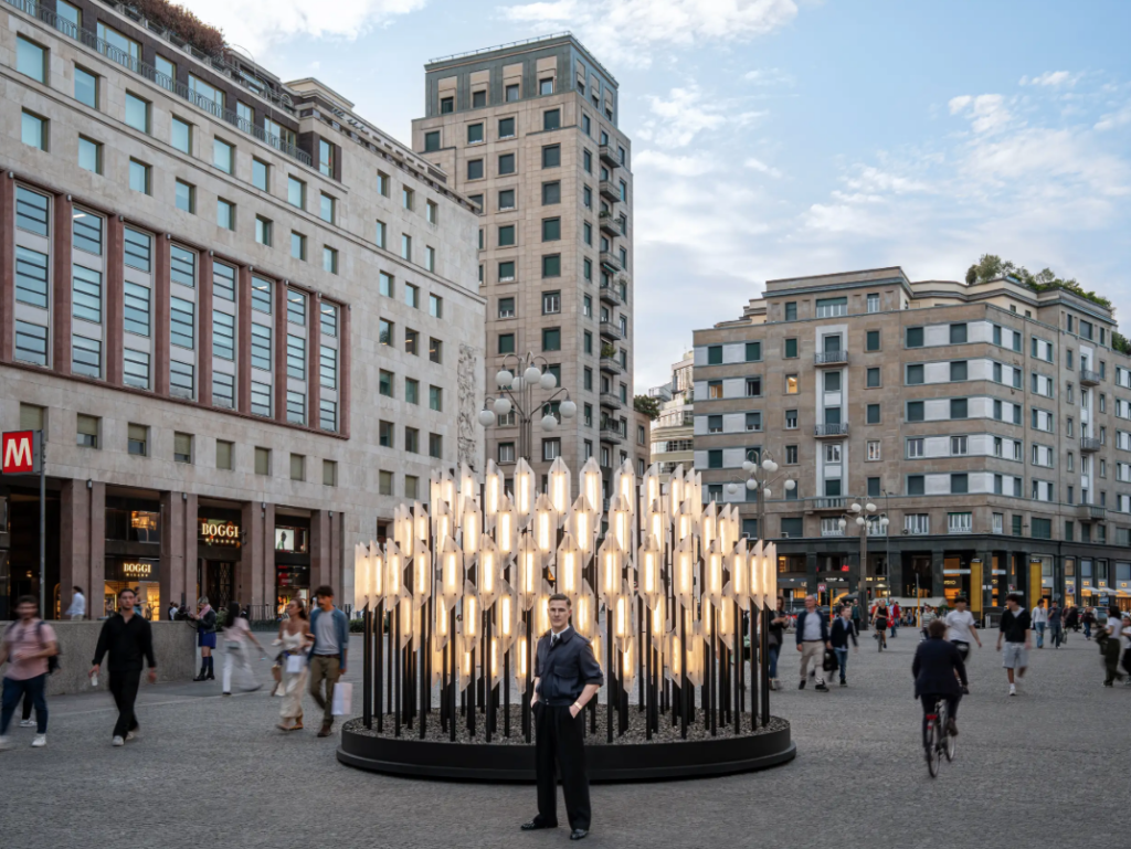 Por la tarde, la cita fue con el diseño británico en el Fuorisalone. Lee Broom encendió Beacon, la pieza realizada en cola oración con Brokis, en el distrito de Durini. Es una instalación monumental que se siente como un faro moderno en medio del caos urbano de Milán. La escala es impresionante y confirma que la iluminación es, hoy más que nunca, el alma de los espacios.