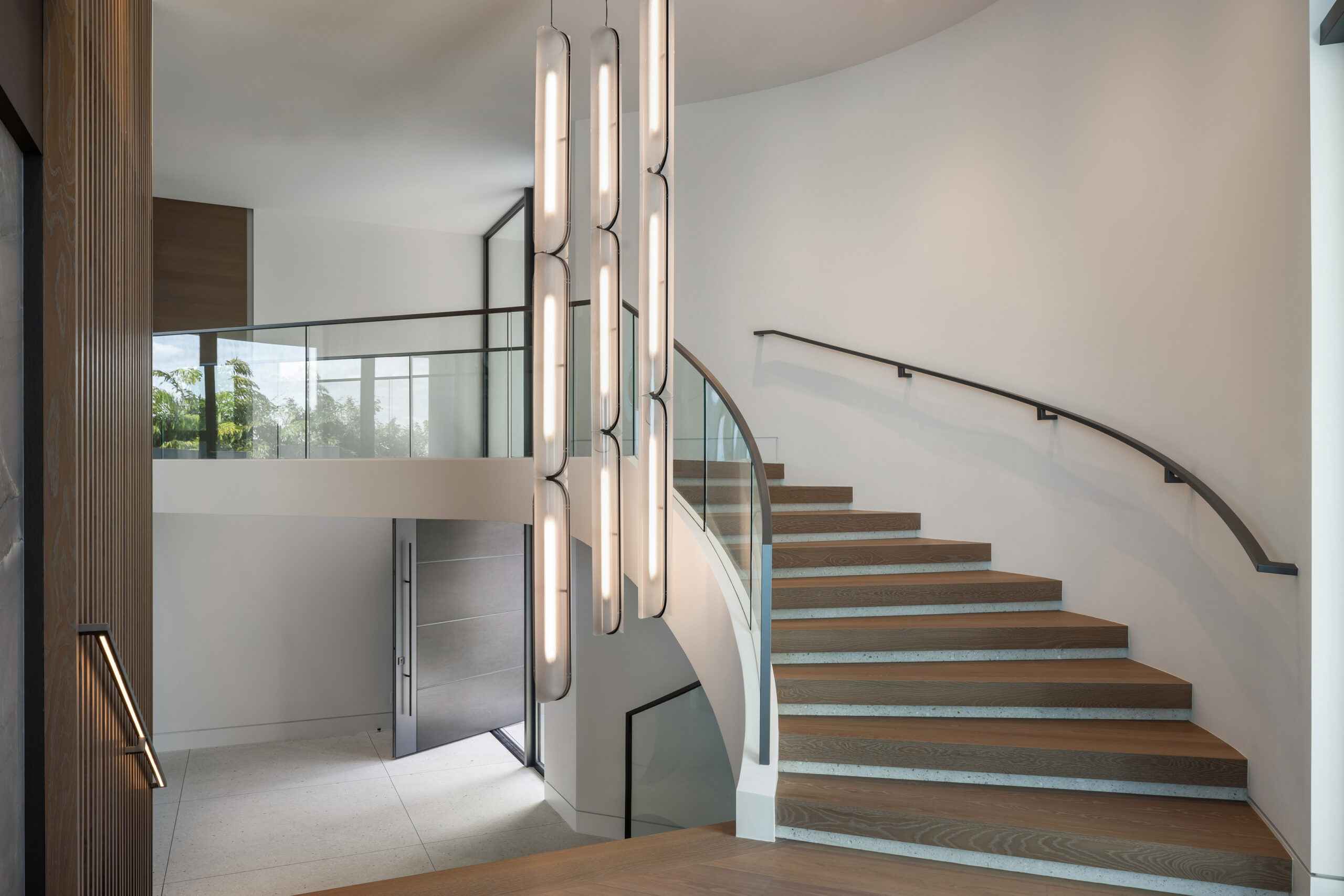 Una constelación de luces del candelabro Hail desciende por el hueco de la majestuosa escalera de mármol del hotel Mandarin Oriental Mayfair. Se trata de una instalación diseñada por Lee Broom específicamente para iluminar este espacio. De este modo, la luz se transforma en escultura y redefine la magia festiva. Luz festiva Célebre por fusionar técnicas clásicas con dramatismo contemporáneo, Lee Broom rinde homenaje a la artesanía con esta lámpara de araña. La cascada luminosa Hail se forma por varillas