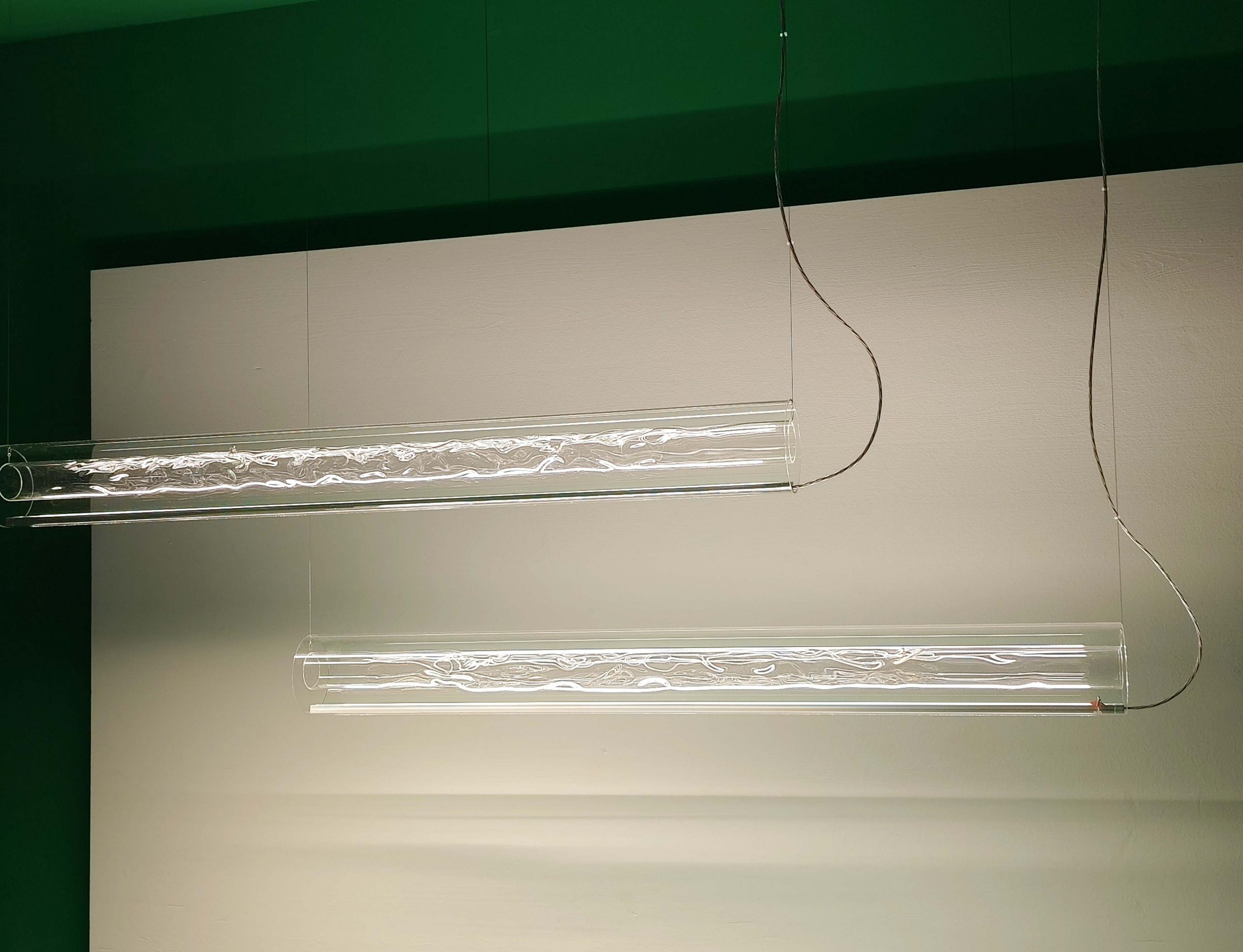 La nueva lámpara de Ingo Maurer, Nalum, se caracteriza por emitir una cálida luminosidad ambiental al tiempo que directa descendente. Elaborada en vidrio de borosilicato, la luminaria de suspensión encierra una pieza alargada. Esta evoca el dinámico movimiento de las olas y la fascinación y misterio de las aguas profundas.